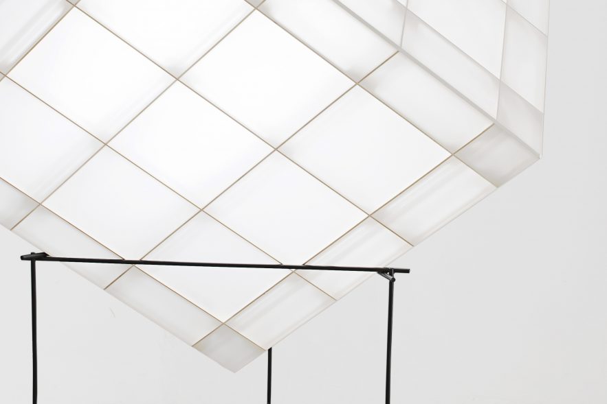 The abstract volumes of the Space Frames are based on archetypical architectural elements such as arcs, columns, trusses and plates. The Space Frames are made from lightweight wooden structures enclosed by a textile cover: an experimental research into physical and visual lightness, balance and stability.