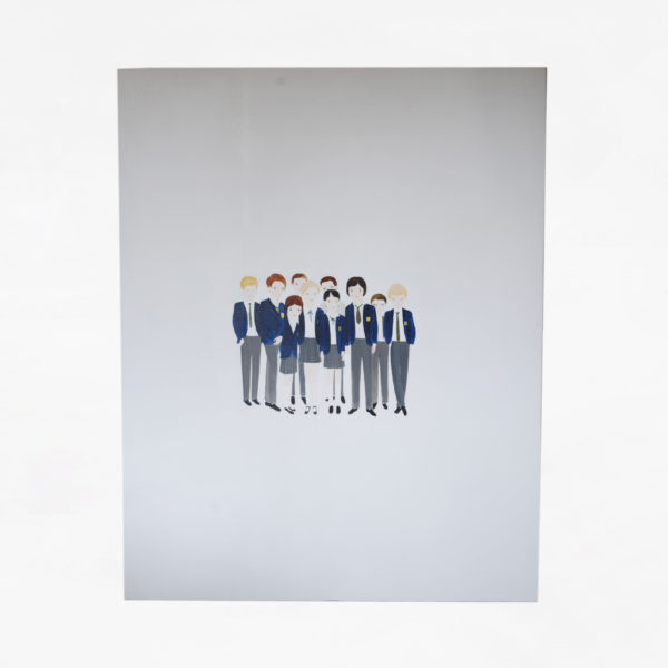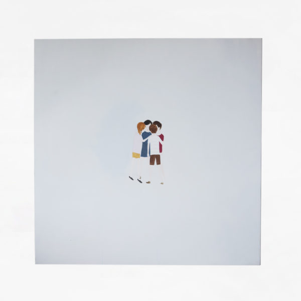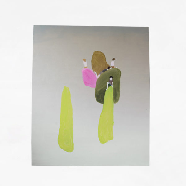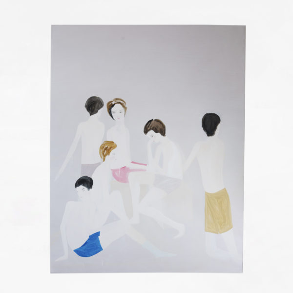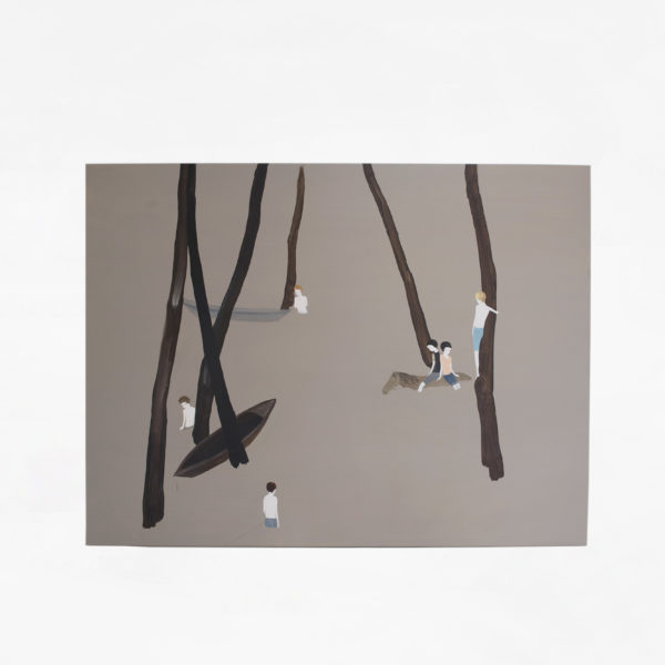 The world Antich depicts in these paintings is intentionally hyper-real, both eccentric and highly meditative. Underneath her apparently simple surfaces, she offers the viewer a profound critique on the division between child and adulthood. Her children seek to physically and emotionally adjust to the adult world while her adult characters retain a childlike demeanor, which at times makes it difficult to distinguish their gender and age. This uncertainty makes us wonder: are these in fact adults or are we still observing children imitating adults? Ambiguity prevails as Antich invites us to peer into and explore her version of a playful but perplexing world.