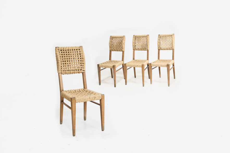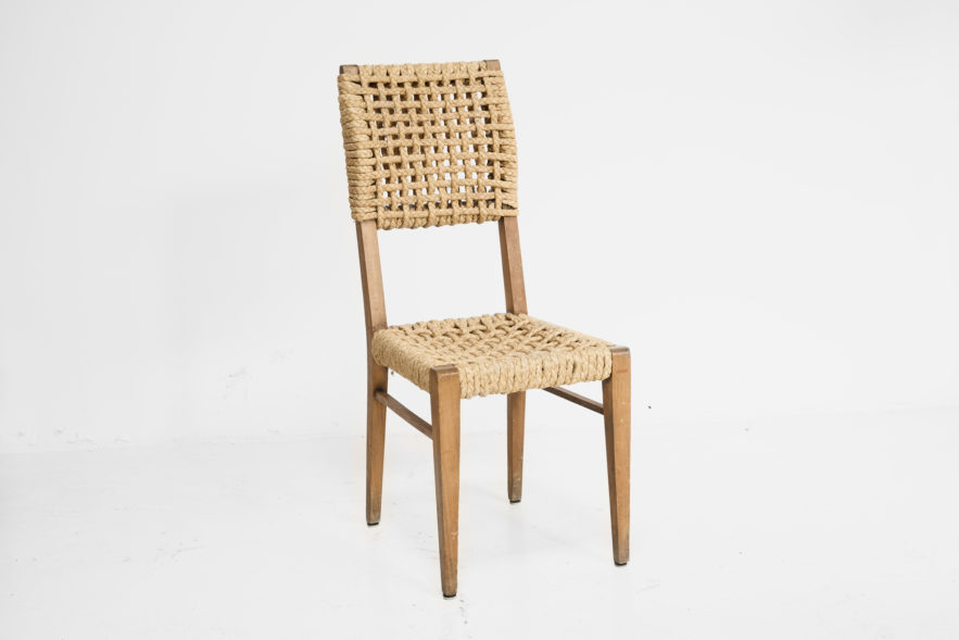 The most recognisable designs by Audoux-Minet were simple frames clad in woven abaca, designed for the company Vibo Vesoul. Audoux-Minet also had a retail outlet in Golfe-Juan; this Provencal coastal town bordered Vallauris, where Picasso was working at the time. This area became a hotbed of ar- tistic creativity, not to mention a destination for af uent trave- llers. Audoux-Minet would have claimed that they were drawn to Golfe-Juan by its artistic reputation and not the wealthy clientele, which would have contradicted the UAM manifesto. However, this would have certainly been a convenient bonus.