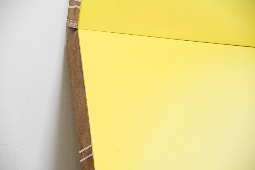 Esther Tielemans is an Amsterdam-based artist and painter whose work examines dimension, space, color and landscape. Her glossy, painted panels culminate in installations, both indoors and outdoors, which imbue sensation and emotion in the viewer. There is a distinct theatricality to her works, challenging the medium of painting to exciting new frontiers.