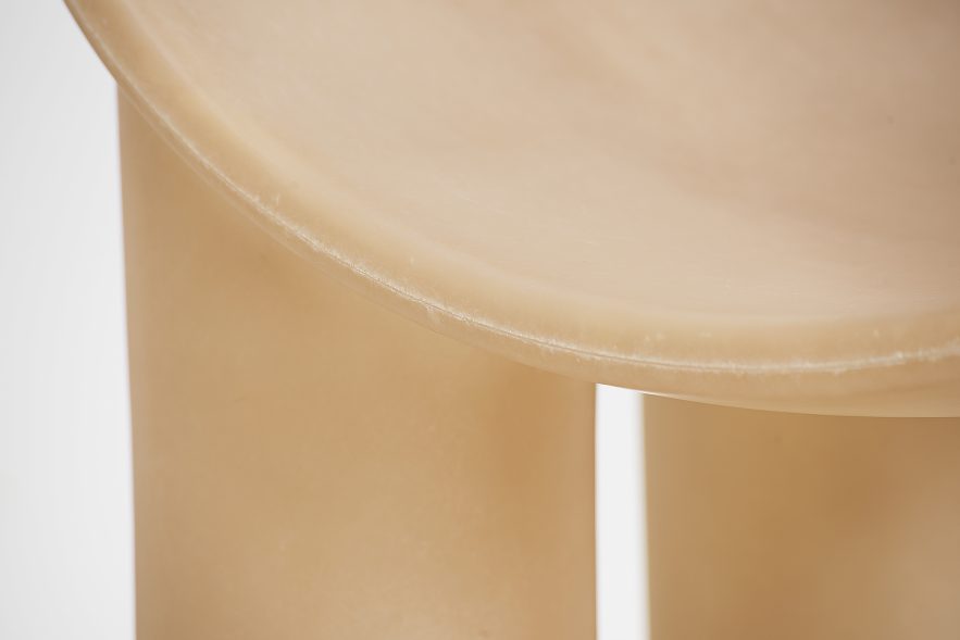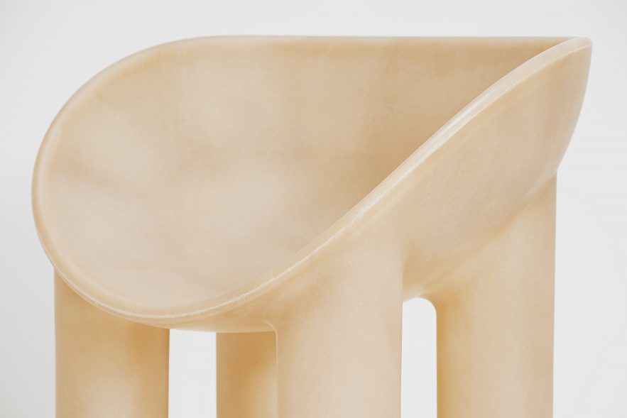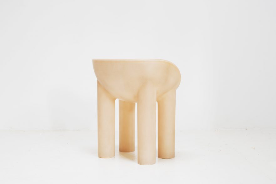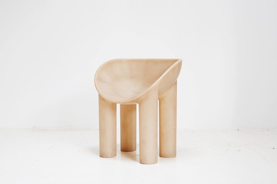 Her furniture and objects demonstrate a preoccupation with materiality and experimentation. All of her pieces are handmade by small-scale fabricators and traditional artisans, with an honesty to the rawness and irregularity of the chosen material.