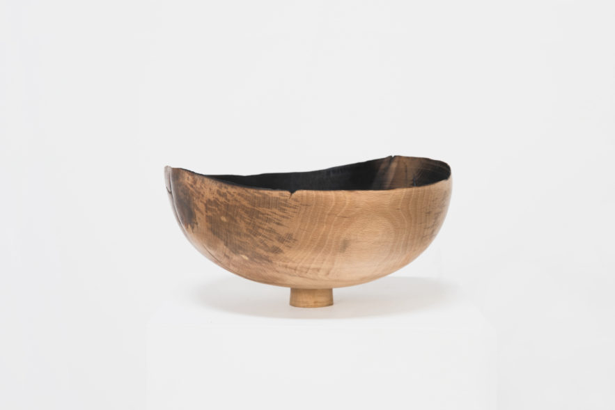 Working in both the visual arts and contemporary craft, draw upon a background in painting and sculpture, whilst looking towards a newly developed language of craft. They work on objects independently, to produce installations and displays that form dialogues between landscape, material and process as they navigate the changing context of the maker. Driven by a deep relationship to the land they work with raw mate- rials sourced directly from landscapes in and around the UK. Wood, earth and iron are the reoccurring elements that ground their individual practices in a material investigation of form, composition and colour. The use of raw material is integral to the work, with wood transformed into objects symbolic of human ritual, and cloth saturated in iron and earth to produce canvases that conjure the monumental and meditative. Using fire, earth and water to sculpt wood and build up colour on the surface of cloth, they produce objects that challenge the relationship between the imagined and the actual, where landscape occupies the critical space between thought and process. They treat this liminal space as a site where human narratives and identity can be challenged and re-written through the gesture of the maker and their interaction with the natural.