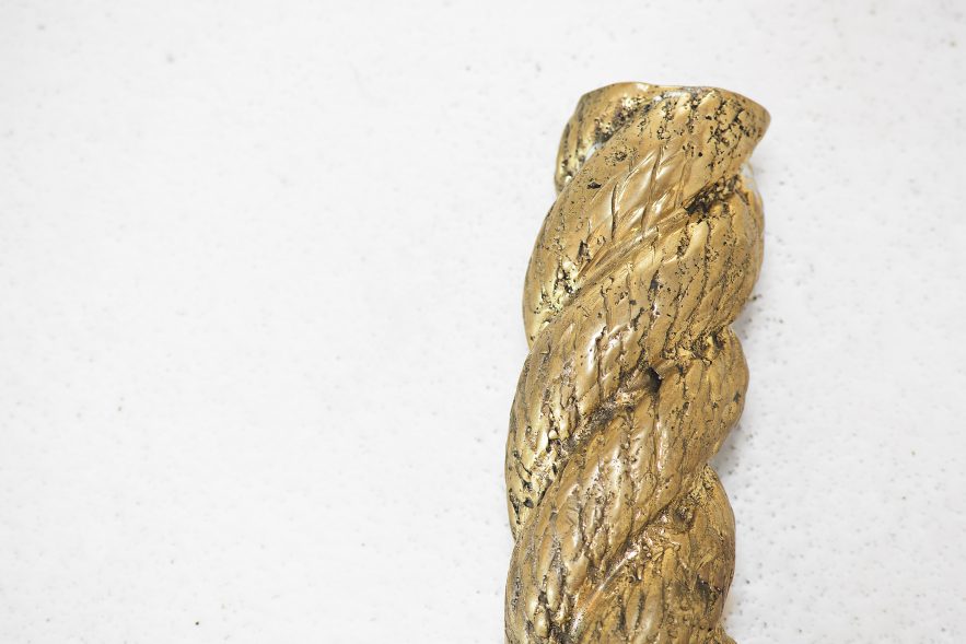 Luna Paiva gilds objects that were not born to be art, but had a nude life of their own. Mounted rocks, succulent plants and cacti, they are species of a wild realm that seems habitu- al: inhabitants of Creation, like us. Her objects speak of a life that preexisted the human eye, transformed by the gilding effect of the human eye. Her gilded still lifes play with the sacred layers of fetish present in contemporary art but also spanning from an ancient tradition, where casting gold embodied a sacred an- ima. Ready-mades of nature gilded for profane adoration.