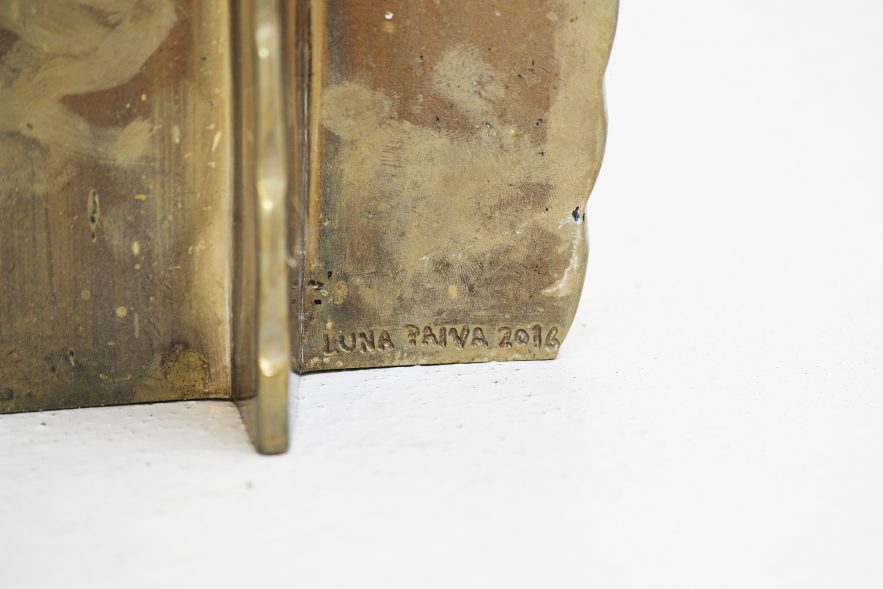 Luna Paiva gilds objects that were not born to be art, but had a nude life of their own. Mounted rocks, succulent plants and cacti, they are species of a wild realm that seems habitu- al: inhabitants of Creation, like us. Her objects speak of a life that preexisted the human eye, transformed by the gilding effect of the human eye. Her gilded still lifes play with the sacred layers of fetish present in contemporary art but also spanning from an ancient tradition, where casting gold embodied a sacred an- ima. Ready-mades of nature gilded for profane adoration.