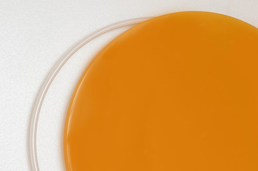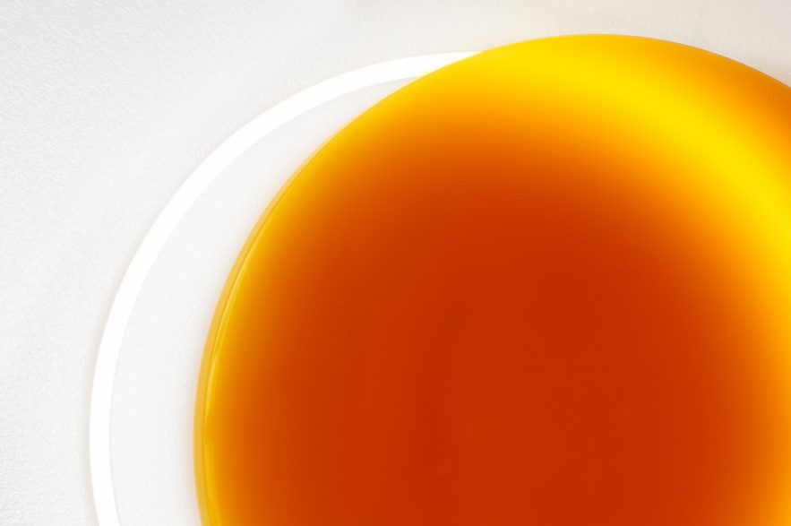 The addition of cast polyester resin diffuses the light path and in turn uses the light source to enhance the colour properties within the resin. A new moment is created when this mutually beneficial relationship is formed between materials, defining the unique properties of each where the two meet.